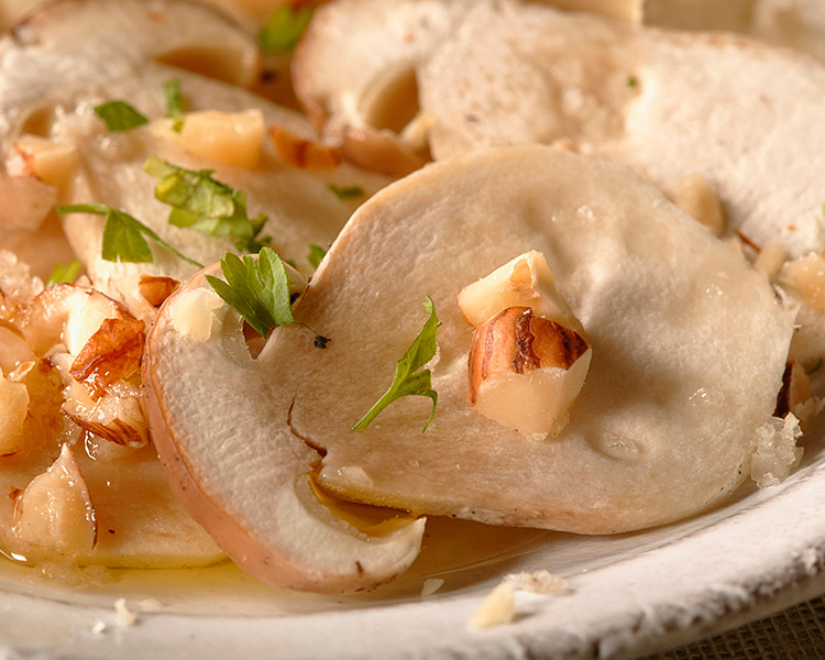 True enthusiasts know that one of the ways to enjoy it is thinly sliced and dressed with a simple drizzle of olive oil, salt, and pepper, accompanied by shavings of Parmesan, a few arugula leaves, and, if desired, a generous squeeze of lemon. The mushrooms remain crunchy and firm, allowing you to appreciate all their aromatic nuances tending towards hazelnut. For raw consumption, it is important to choose clean and perfectly healthy specimens, with meat that is not excessively tough.
