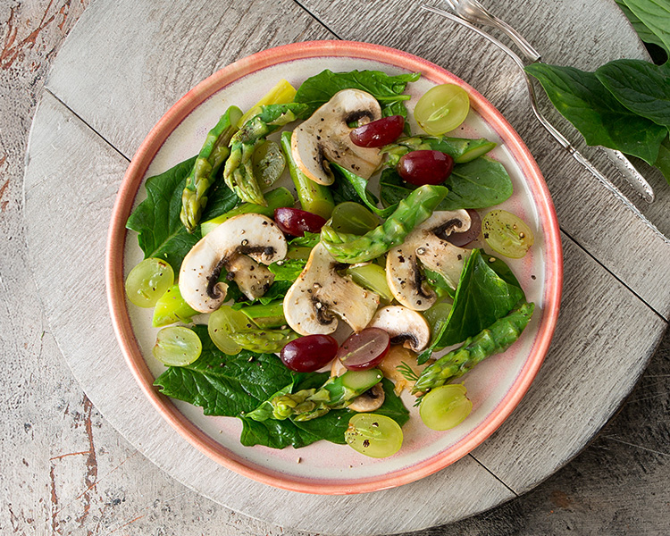 Spinach, asparagus and white button mushroom salad